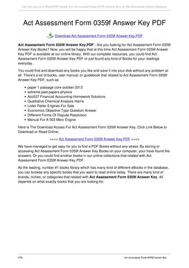 Best answer key for act form 0359f Download EBook Sites No Sign Up - As we know, Download EBook is a great way to spend leisure time. Almost every month, there are new Audio Book being released and there are numerous brand new Audio Book as well.