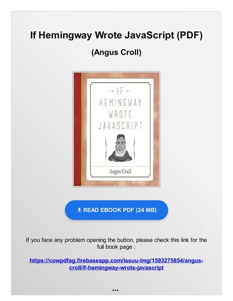 Download if hemingway wrote javascript Reader By Click Button. if hemingway wrote javascript it’s easy to recommend a new book category such as Novel, journal, comic, magazin, ect. You see it and you just know that the designer is also an author and understands the challenges involved with having a good book. You can easy klick for detailing book and you can read it online, even you can download it